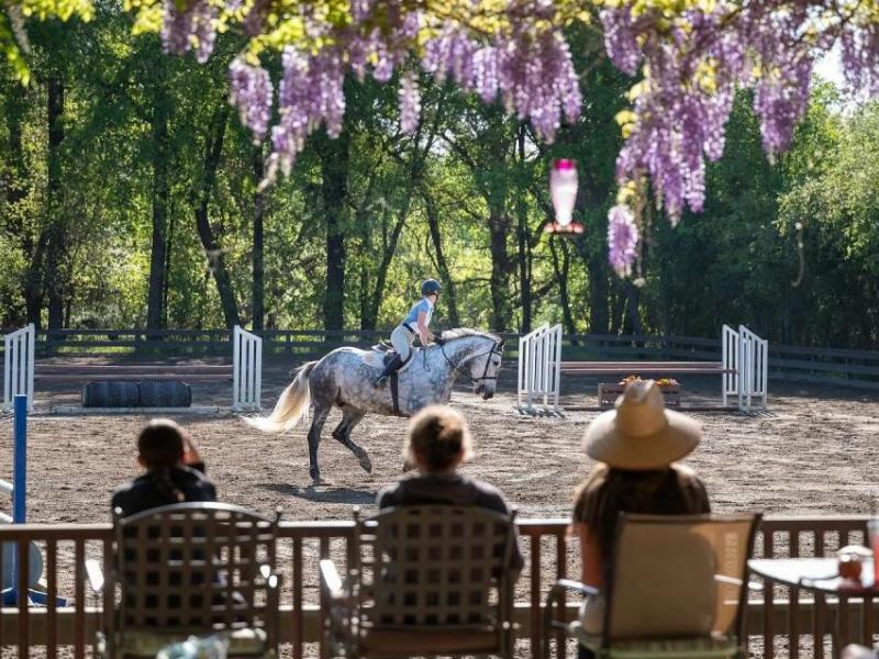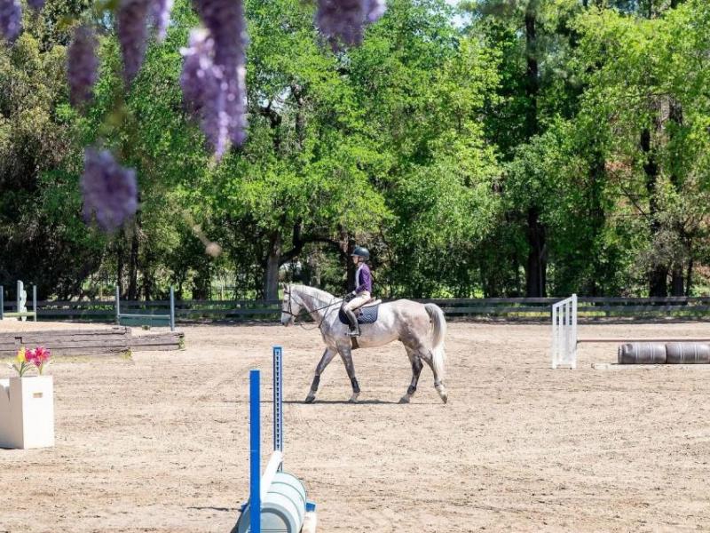 Cavallo Stables has all the show barn amenities; one huge arena, great footing, beautiful jumps, a covered round pen and an equi-ciser that fits 8 horses.
